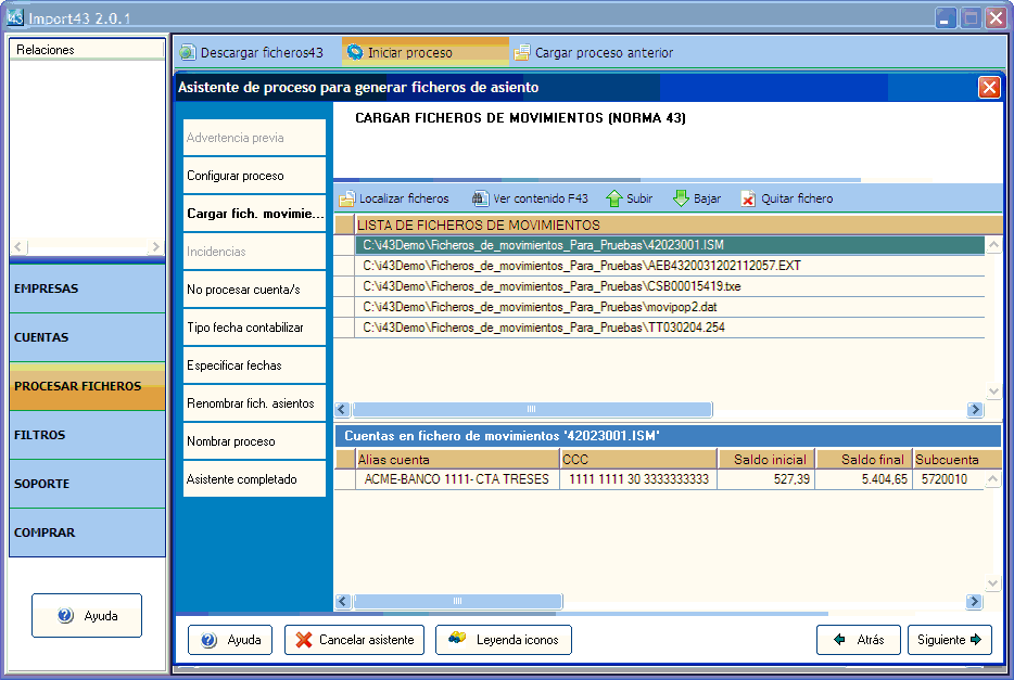 se cargan ficheros de movimientos de cuentas no configuradas,
