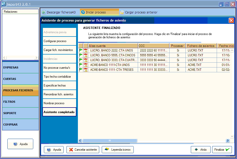 cuenta tratada siguiendo los pasos del asistente.